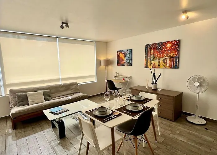 Equipado Estudio en Los Dominicos Santiago de Chile, un apartamento de 42 m², está a poco más de 25 minutos a pie del Parque Araucano. El apartamento cuenta con Wi-Fi y un aparcamiento privado gratuito para los huéspedes que viajen en coche.